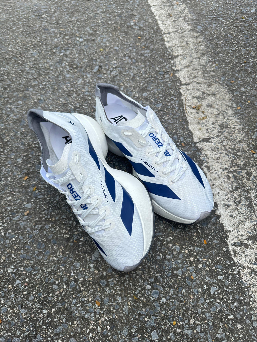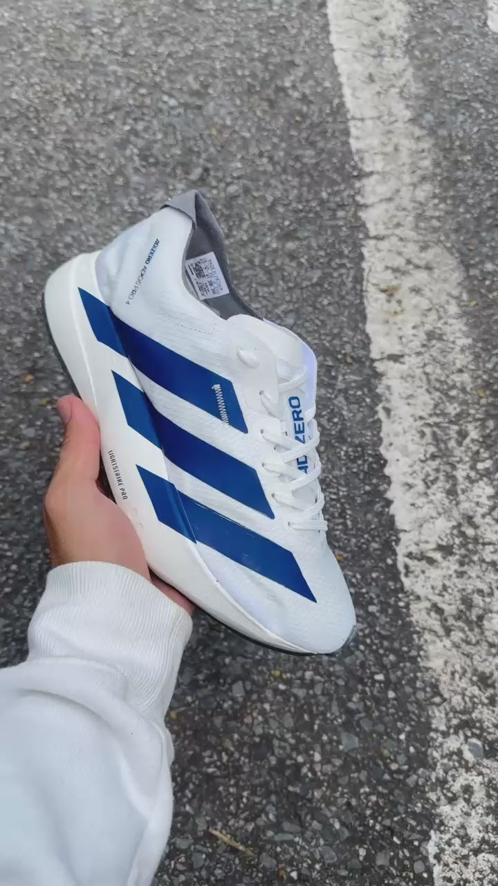 O Adidas Adizero Adios Pro 4 Premium â Branco/Marinho foi criado para quem quer baixar tempo, cruzar a linha de chegada com autoridade e ainda manter um visual limpo e profissional.