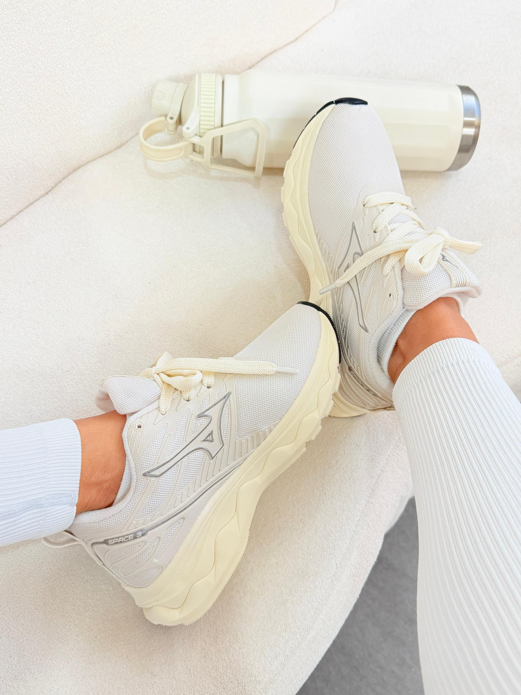 O Mizuno Space 3 â Off/Prata Ă© perfeito para quem busca conforto no dia a dia com um visual clean e sofisticado.