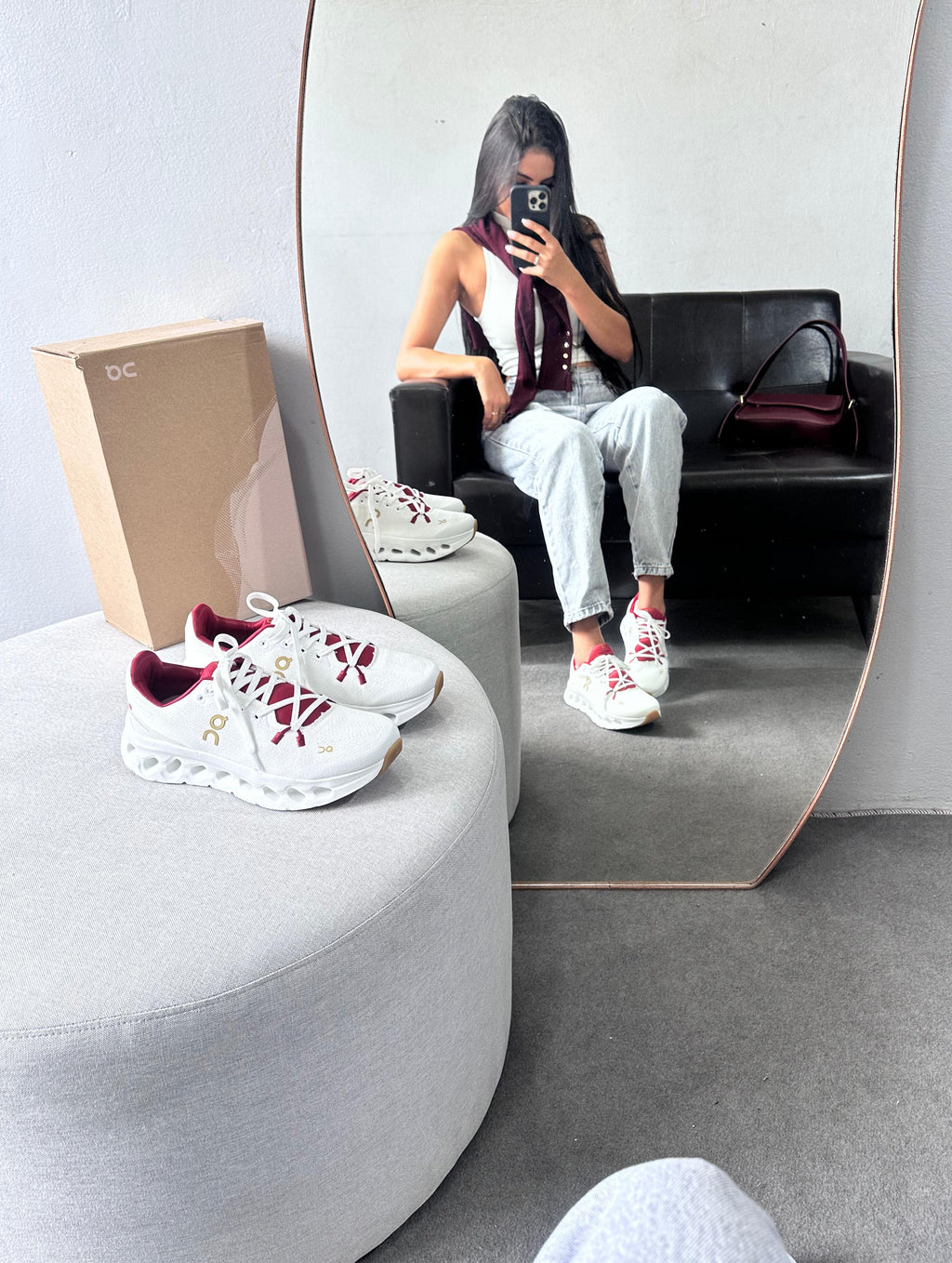 O On Cloudtilt Asphalt – Branco/Bordo não é só um tênis bonito.