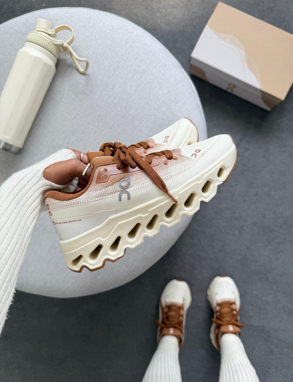 O On Cloudtilt DegradĂȘ â Off/Caramelo leva a identidade inovadora da linha Cloud Ă um novo patamar, unindo tecnologia de amortecimento premium com um visual moderno em tons off e caramelo.