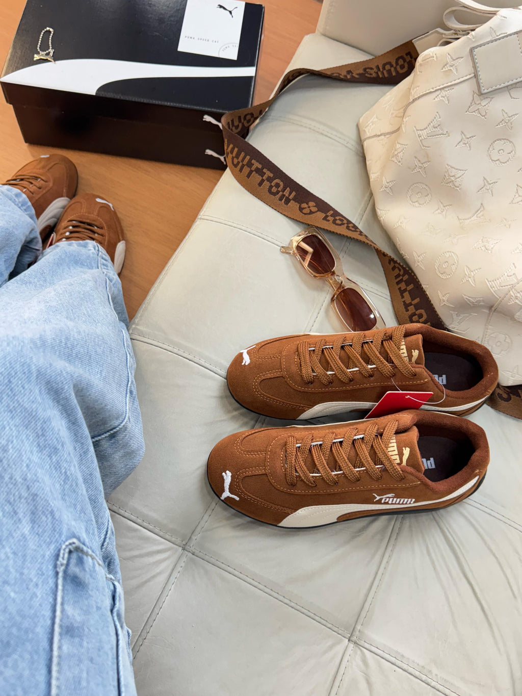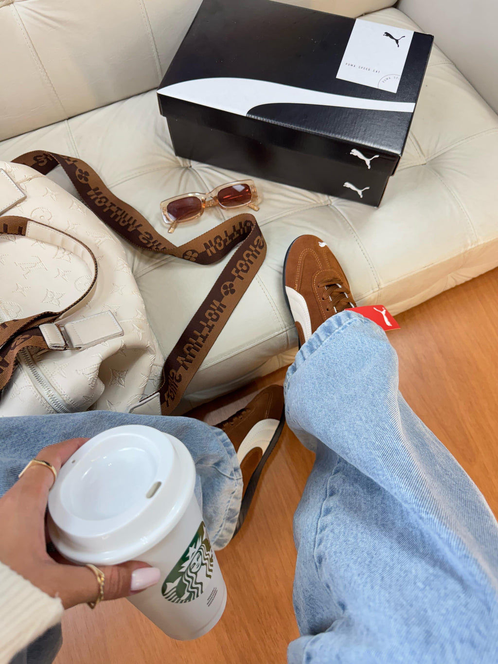 O Puma Speedcat estĂĄ em alta no streetwear e algumas cores, como o marrom, sĂŁo ainda mais exclusivas.