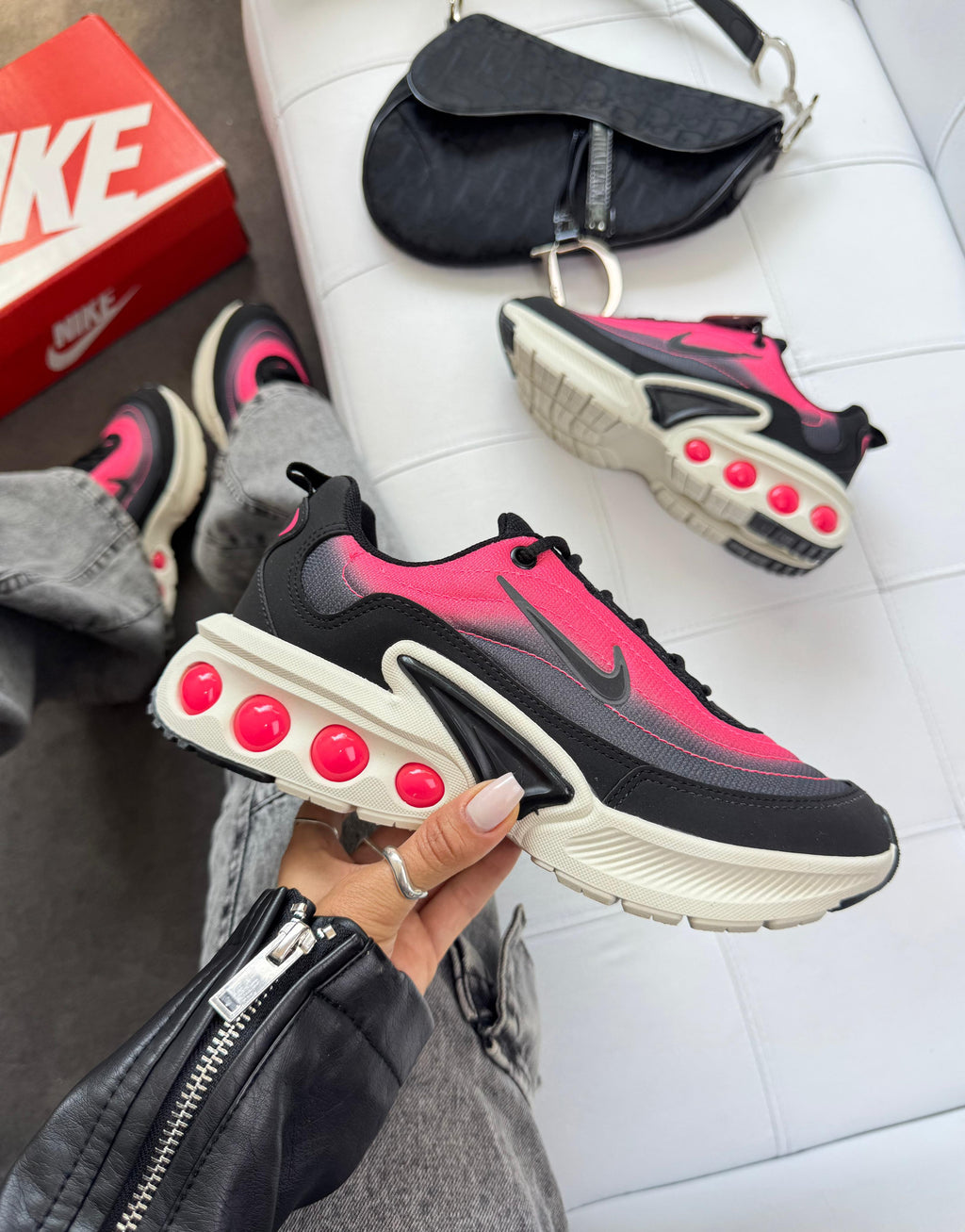 O Nike Air DN Preto/Pink é aquele tênis que une conforto extremo com um visual moderno e marcante. Perfeito pra quem não abre mão de leveza, estabilidade e um toque de cor que faz toda a diferença no look.